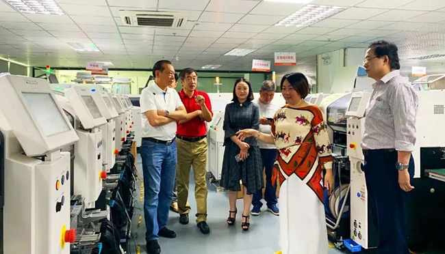 接下来,行业协会领导一行人深入到智能生产车间进行了参观考察,对公司2020年布局的新基建项目“5G智能灯杆”,及主打互联网租赁的“云仓”的完整产业链模式做了深入了解;对于公司的创新项目及模式,领导们给予了高度认可和赞扬;称赞多宝电竞未来能成为“世界的多宝电竞”!